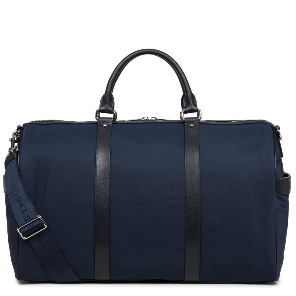 Спортивная мужская сумка текстиль/кожа. Одинарные боковые карманы, внутренний карман на молнии, 2 одинарных внутренних кармана. Размер 45x27x20 см.