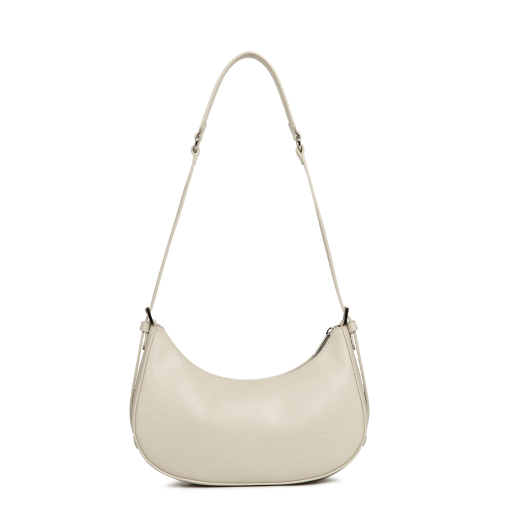 Сумка в форме полумесяца изготовлена из спилка зернистой яловой кожи. Имеет большой внутренний карман. Его можно носить на плече или через плечо. Размер 28x14x7 см.
