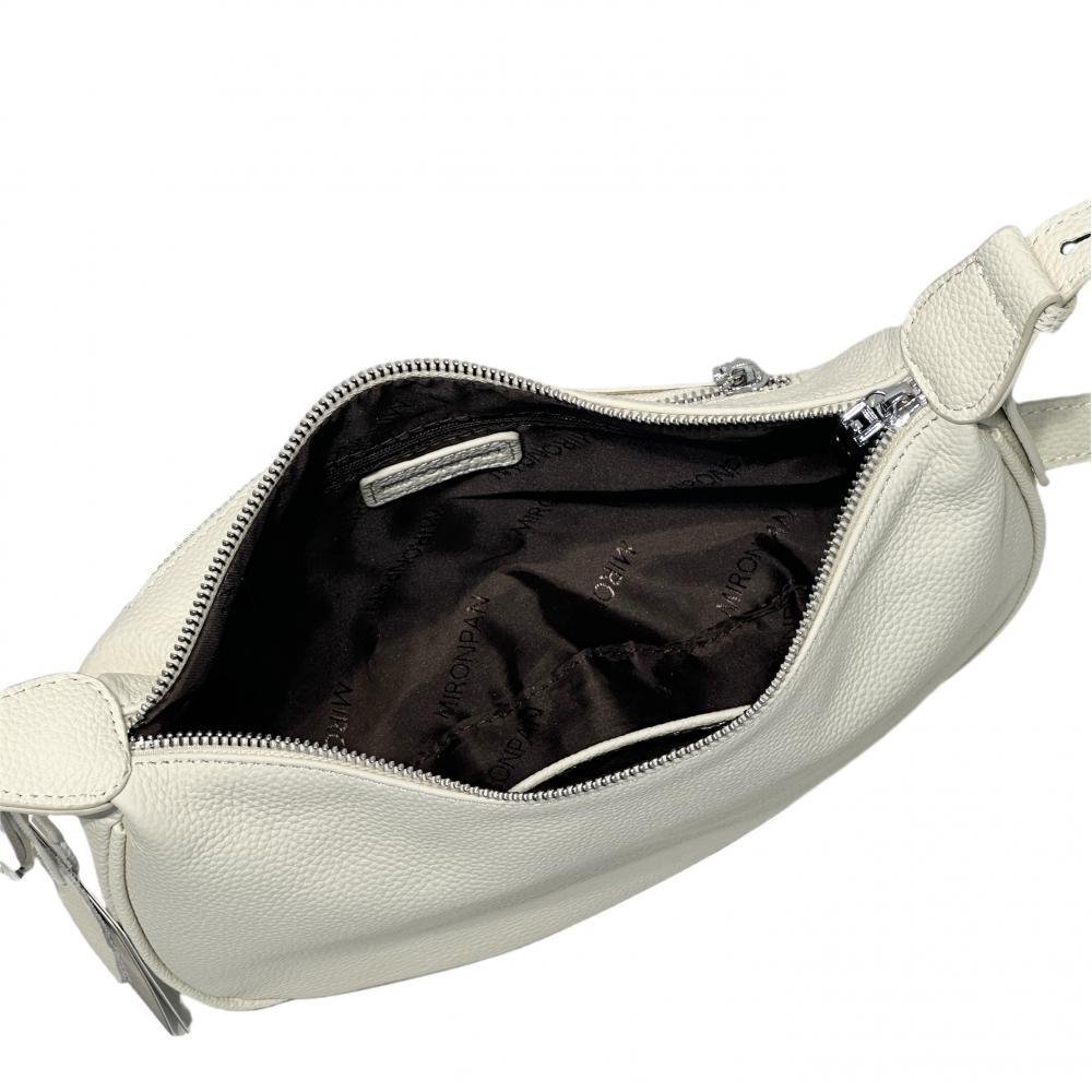 Стильная сумка на плечо MIRONPAN в молочном оттенке выполнена из натуральной зернистой кожи и отличается лаконичным дизайном. Сумка закрывается на молнию с металлическим поводком. Внутри 2 боковых кармана для мелочей: открытый и на молнии. На тыльной стороне предусмотрен карман быстрого доступа на молнии. Плечевой ремень - регулируется по длине позволяет комфортно носить сумку на плече, ширина - 2,5 см. Размер 27 x 16 x 8 см.