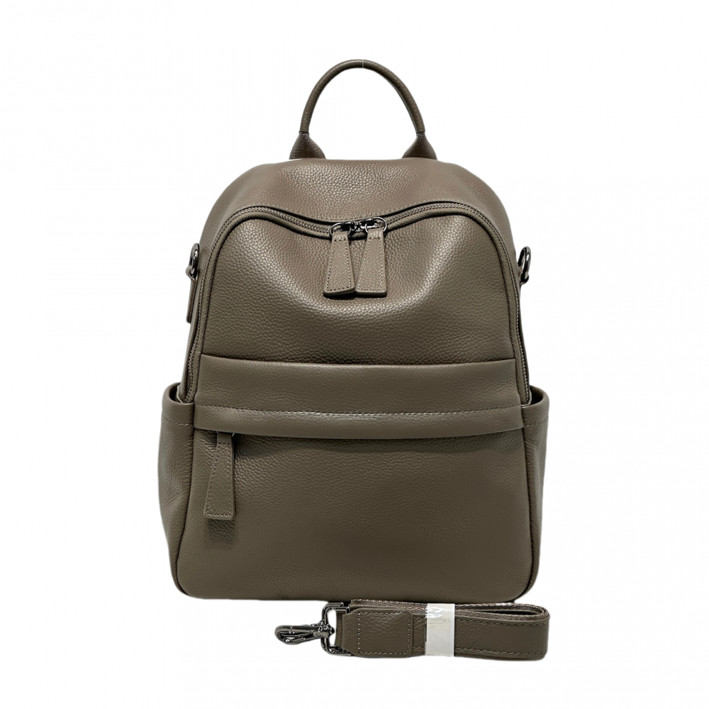 Стильный рюкзак MIRONPAN , выполнен из натуральной зернистой кожи. Основное отделение закрывается на молнию с 2 бегунками. Внутри 3 боковых кармана для мелочей: открытый и 2 на молнии. На лицевой стороне расположены 2 кармана быстрого доступа на молнии и на магнитной кнопке. По бокам есть открытые карманы. На тыльной стороне предусмотрен карман быстрого доступа на молнии. Сверху есть ручка, позволяющая комфортно носить изделие в руке. 2 лямки шириной 3 см регулируются по длине. В комплекте плечевой ремень съемный, длина - 68 см, ширина - 3 см. Размер 26 х 32 х 12 см.