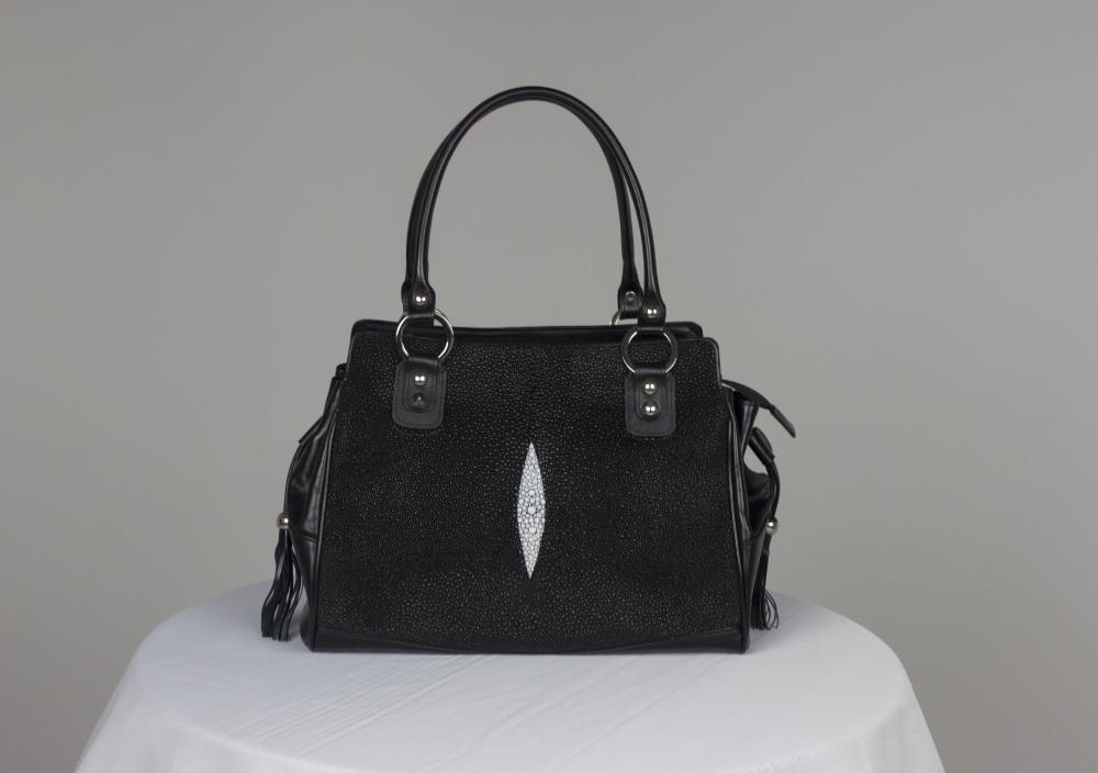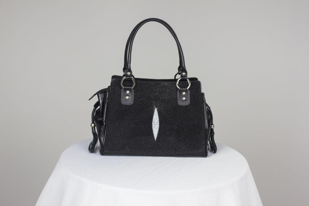 Сумка эксклюзивная дамская из кожи морского ската, с 2 ручками из телячьей кожи, на молнии.