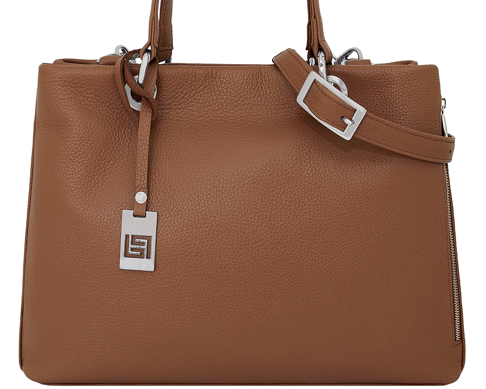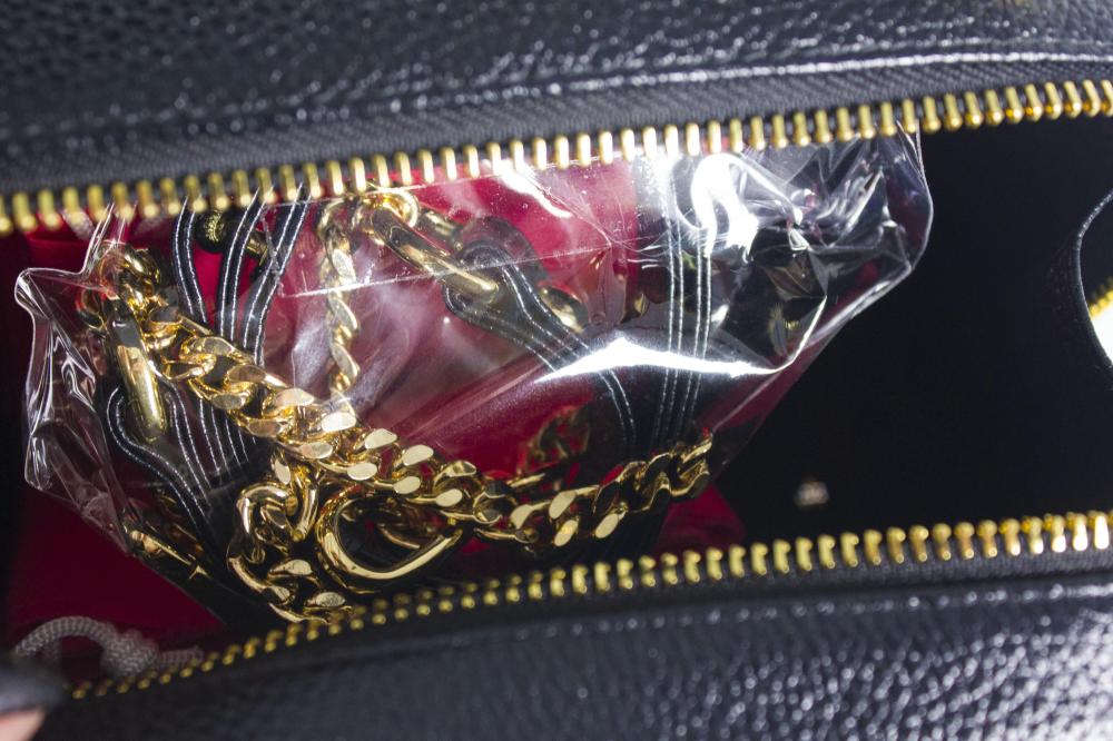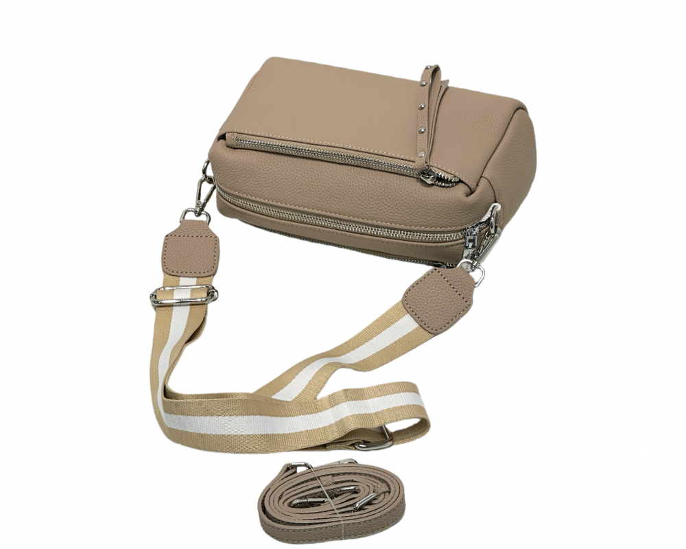 Внутри у сумочки одно просторное отделение и 2 кармана по краям: на молнии и открытый.