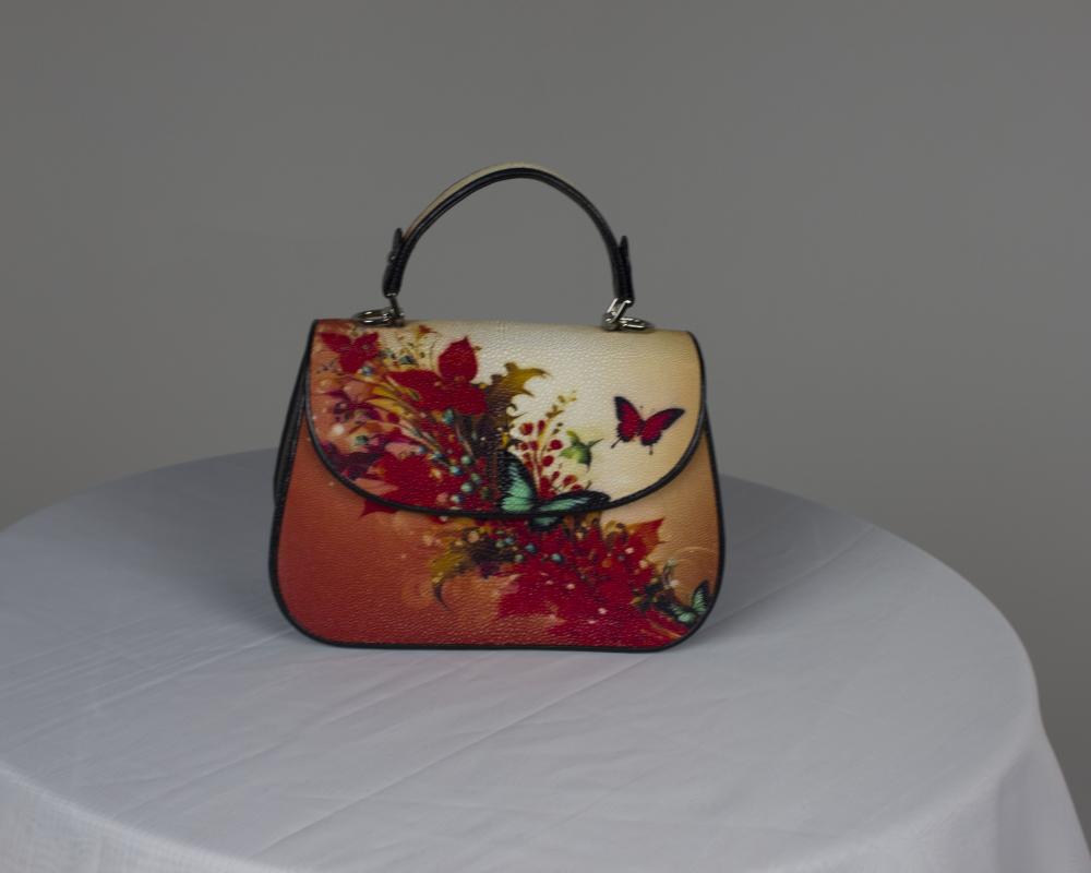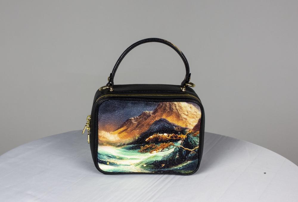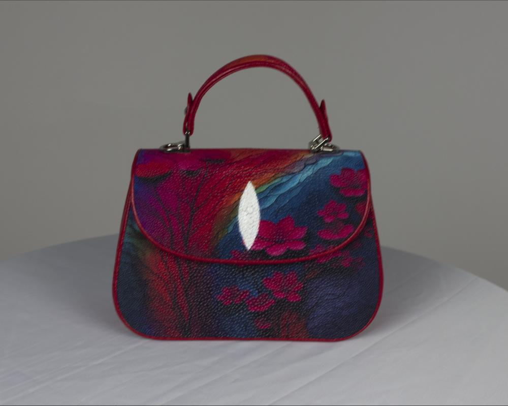 Сумка mini дамская, из подлинной кожи морского ската, с принтом, от премиального тайского бренда.
