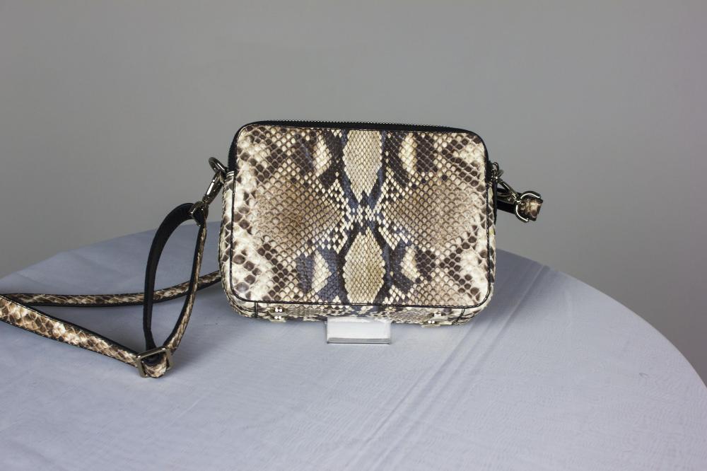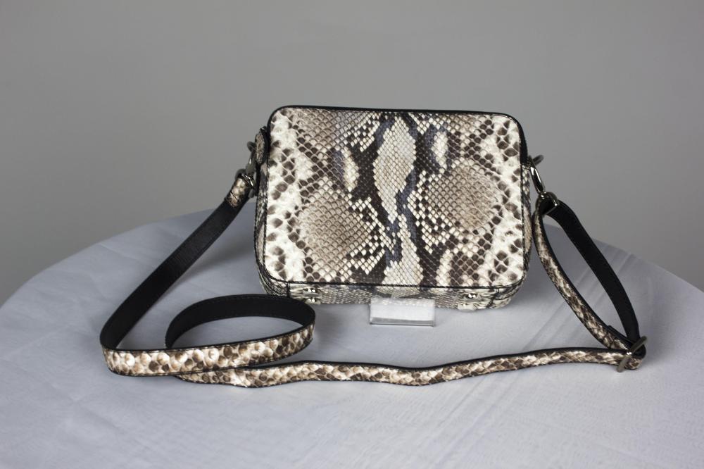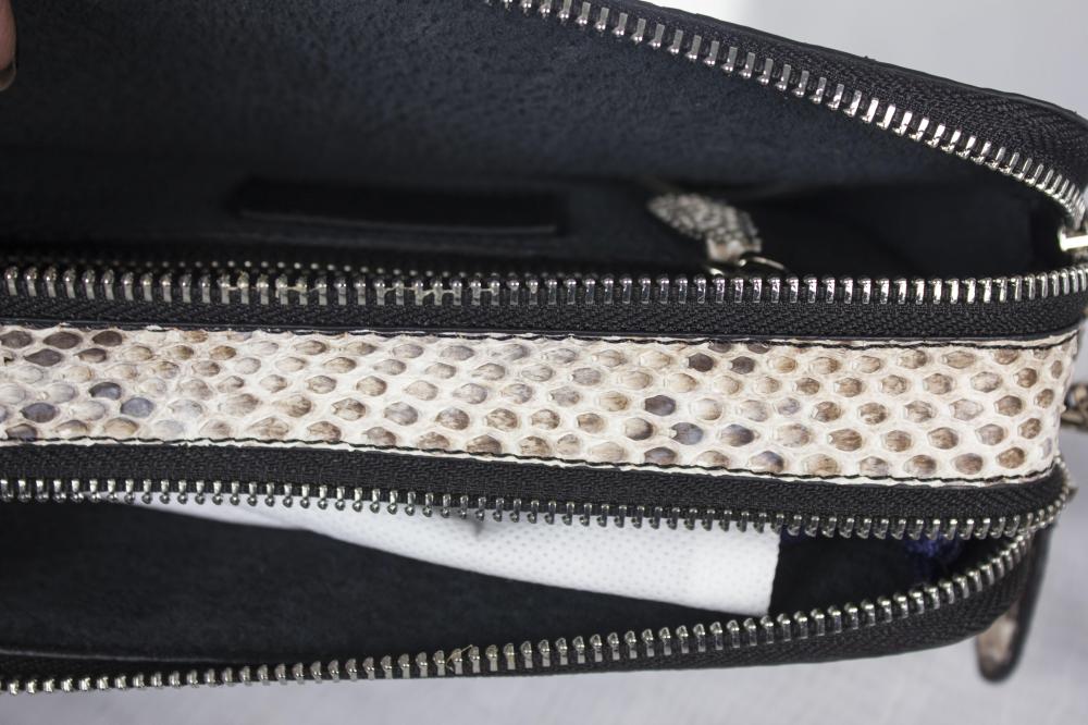 Сумка mini дамская, из подлинной кожи питона с двумя отделами, каждый из которых закрывается на молнию. Размер: 21х14х6 см., плечевой ремень с кожей питона. Снаружи - подлинная кожа питона, телячья кожа. Внутри - подклад из синтетического материала. Качество высокого уровня.