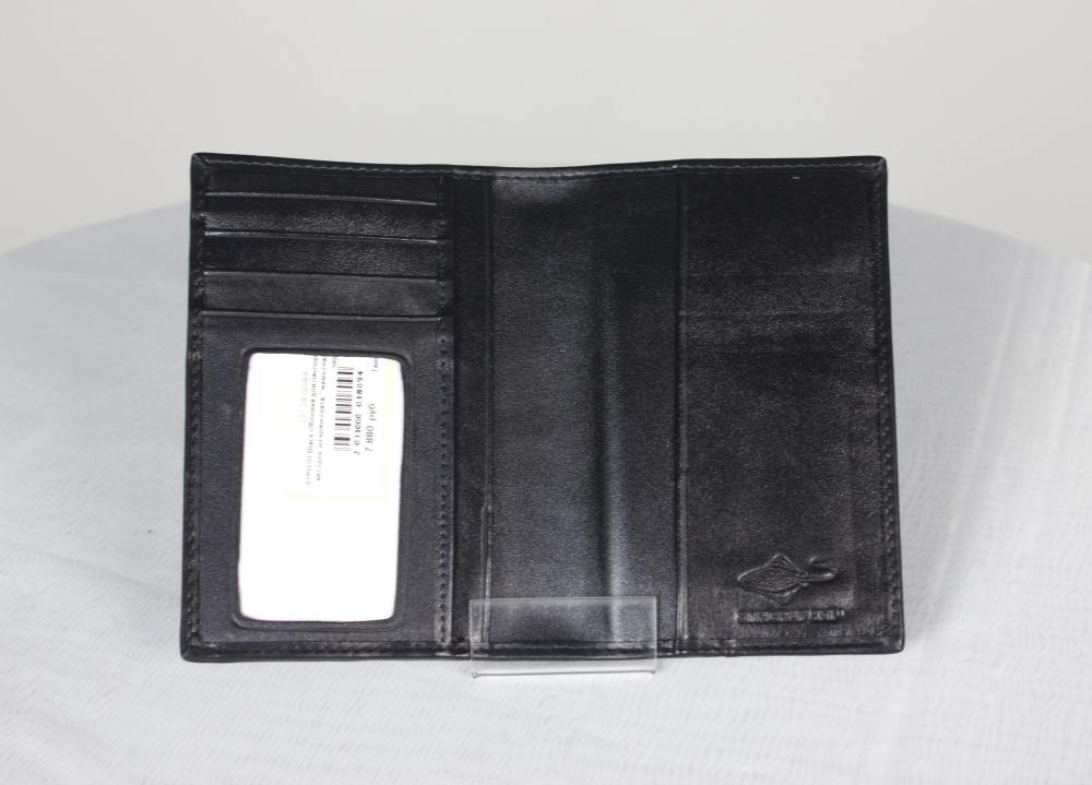 Внутри кожаные карманы и 4 слота для банковских карт, пропусков, электронных ключей и иных пластиковых карт. Один из слотов с прозрачным окошком.