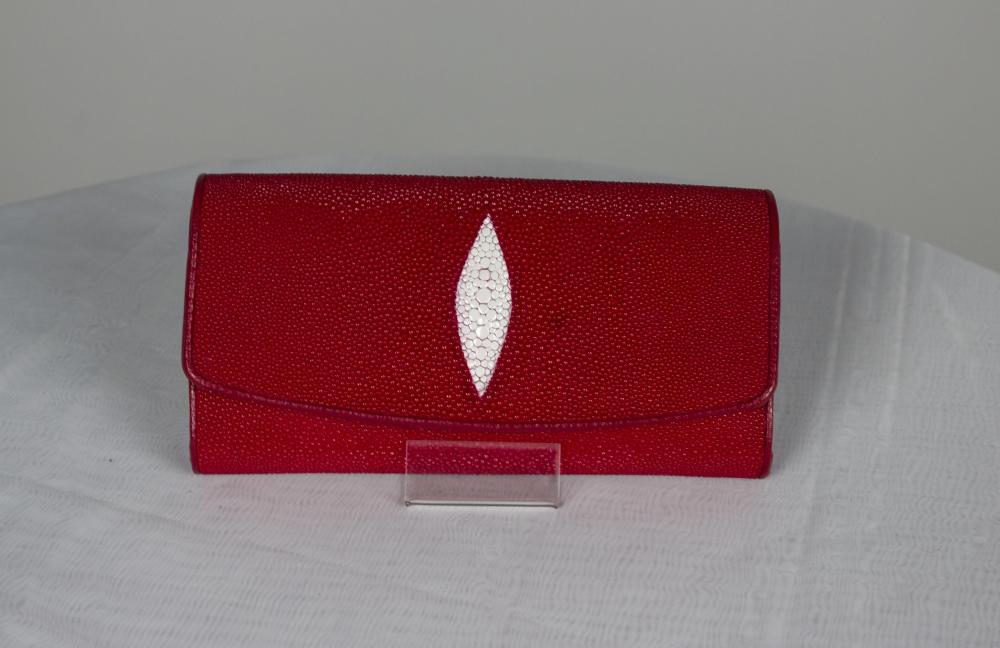 Классическое дамское полнокупюрное портмоне из настоящей кожи морского ската. Бисерная фактура кожи делает этот аксессуар лаконичной формы настоящим эксклюзивным шедевром.