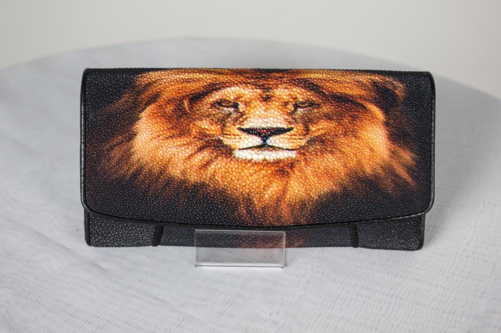 Классическое дамское полнокупюрное портмоне из подлинной кожи морского ската с принтом.