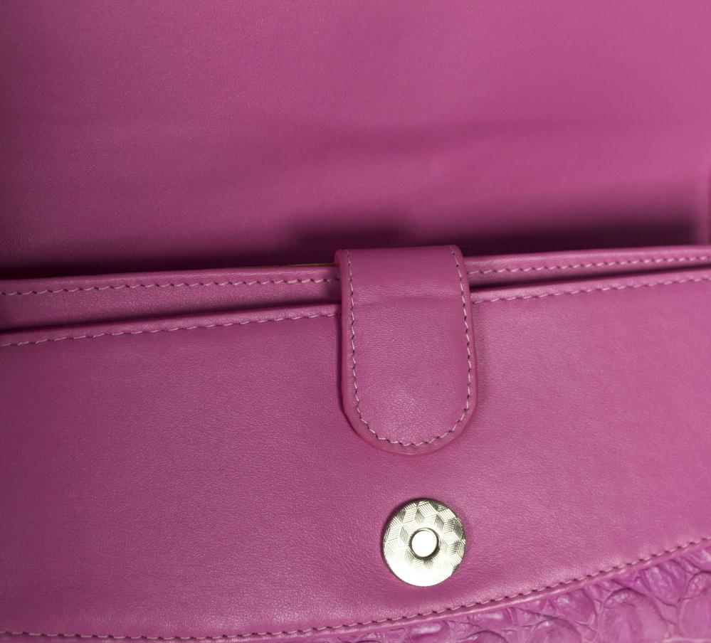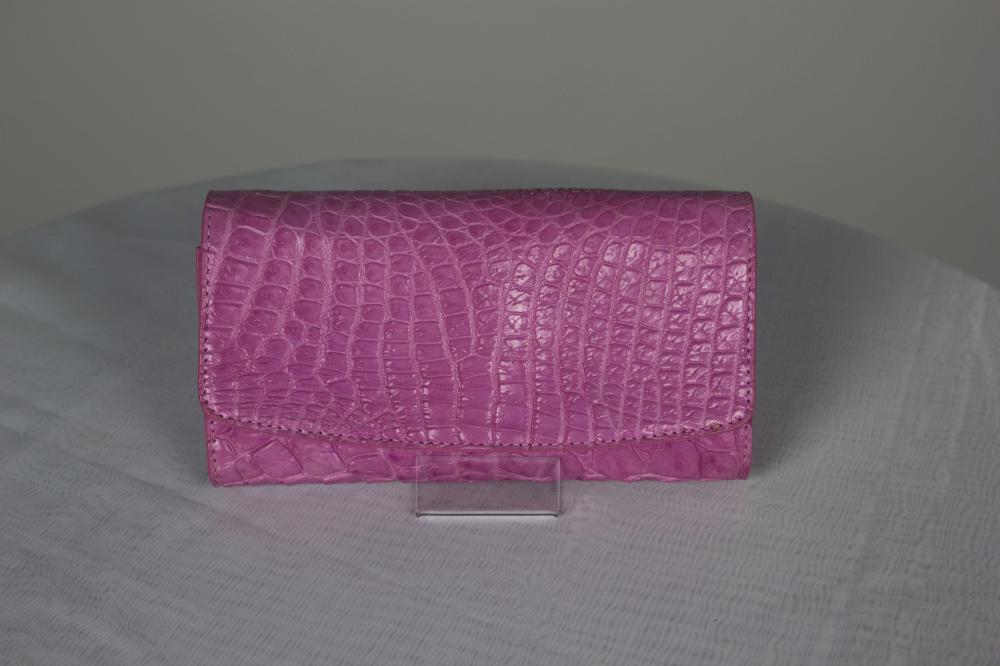 Классическое полнокупюрное дамское портмоне из шкуры живота сиамского крокодила с красивой фактурой. Внутренняя отделка - высококачественная телячья кожа. Размеры: 19,5 x 10.